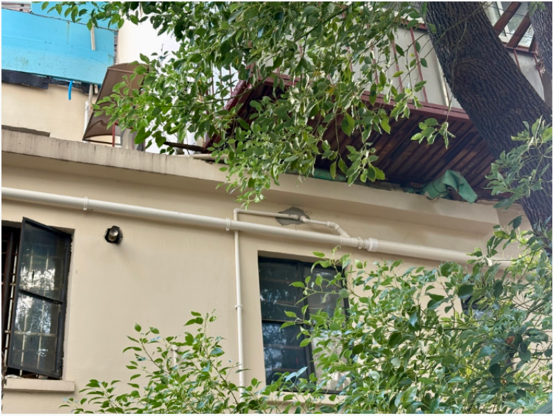 为规避邻里矛盾,宝安支路45-51号三楼的污水管(图中较粗的管道)横向铺设。