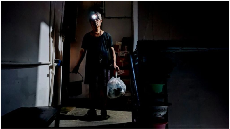 过去楼道里一度没有灯,周密要头顶矿灯去倒马桶。受访者供图