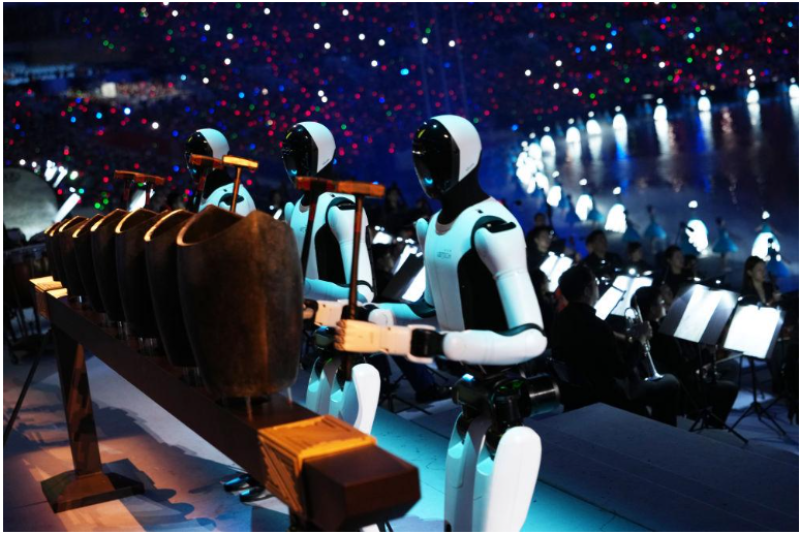 人形机器人在十五运开幕式上表演。图源新华社。