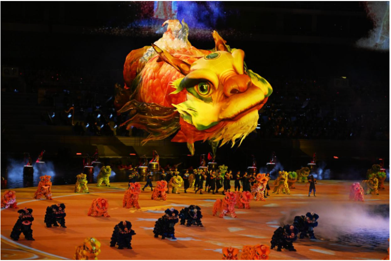 十五运会开幕式艺术总监陈维亚表示,开幕式由中国传统文化和岭南文化的结合点拉开帷幕,广东是高科技的先行地,用人形机器人敲响千年古器作为文体表演的开始,能达到时空交响、一鸣惊人的效果。
