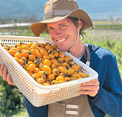云南大理,洱海之畔,一辆红色的货运三轮车“突突突”驶过乡间小路。开车的人头戴草帽,载着一筐筐苹果,遇到颠簸也把车开得稳稳当当。车停,一只手递过来。“刚摘的苹果,尝尝吗?”听着是标准普通话,仔细一瞧却是个“洋面孔”。