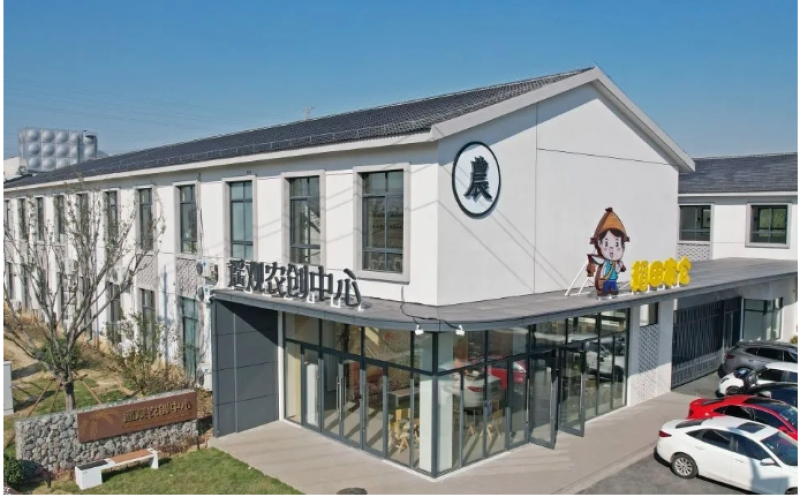 走进中心,南北分区清晰明了。北部挑高区域设有农机停机库、冷链仓储和现代化稻米加工中心,为农业生产提供“硬支撑”;南部二层空间聚焦“软体验”,稻米博物馆、粮食加工体验区、美食工坊、农仓驿站和网络直播间一应俱全,成为推动渔庄村产业升级的新引擎。