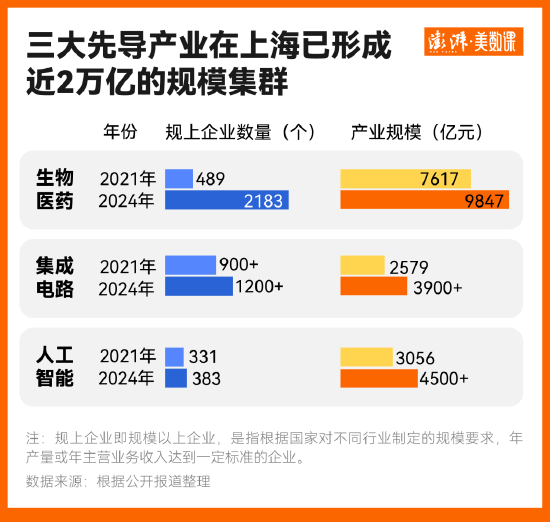 以生物医药产业为例,实施“十四五”规划的第一年即2021年,上海的生物医药规上企业数量是489家,但仅仅3年后的2024年末,这个数字就达到了2183家。国际药企和医疗器械头部20家企业中各有19家在上海设立总部或研发中心。正因为有如此扎实的生物医药产业,前三季度,上海医药品、西药原料药出口分别增长21.5%和40.7%。