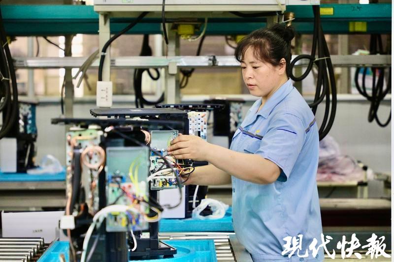 在常州武进区的江苏友奥智能科技股份有限公司生产车间内,现代快报记者看到,机械臂有序摆动,自动化生产线高效运转,一批批高度仅如3本书摞起的移动空调,正源源不断地从生产线上落地,它们将远销北美、欧洲等全球60多个国家和地区。