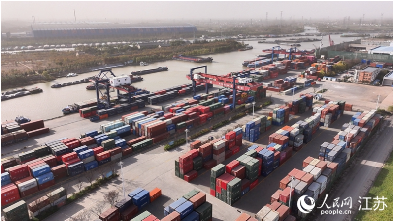 2024年,淮安港以突破57万标箱的内河集装箱吞吐量,连续16年位列江苏省内河港口第一名。人民网记者 余乐摄