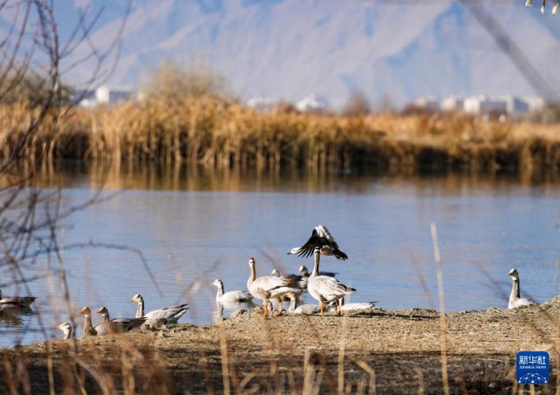 12月20日,斑头雁飞翔在拉鲁湿地上空。
