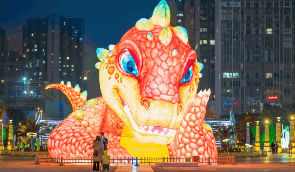 作为华东地区极具影响力的跨年灯会,本次活动精心打造了多个网红打卡灯组,堪称“天然摄影棚”。华东首个悬浮灯组“天马行空”,以35米宽、25米高的庞大体量和未来感设计,实现360度无死角观景,让摄影新手也能轻松拍出惊艳朋友圈的大片;AI聊天恐龙花灯“吉龙崽”软萌上线,游客站在专属地台即可与这只“会唠嗑”的恐龙互动,解锁关于2026年的趣味问答;60米“流光之翼”灯组气势恢宏,超长跨度带来沉浸式偶像剧氛围,成为跨年合影的热门之选。
