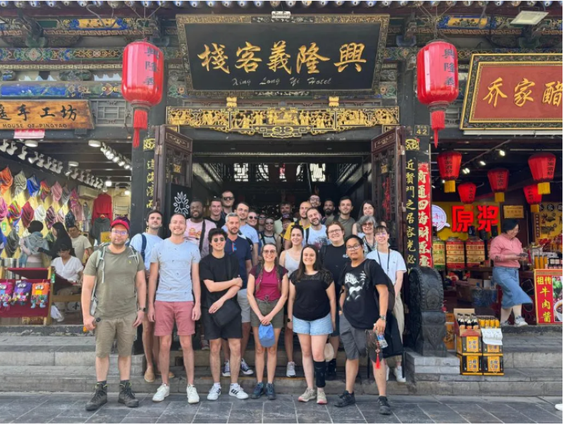 法国游客在山西平遥古城合影留念