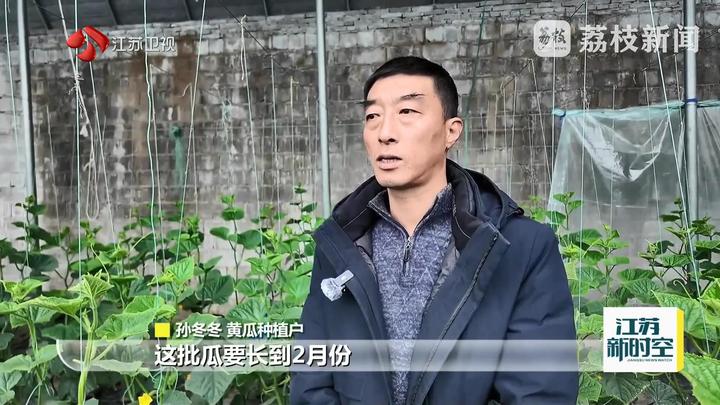 黄瓜种植户孙冬冬说:“这批瓜要长到2月份。今年价格可以,相对于往年价格高到两倍。往年像去年这时候瓜都在1.5元/斤左右,今年在3.8元/斤左右。”