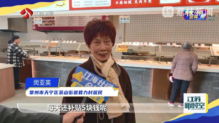 常州市天宁区茶山街道群力村居民闵亚英说:“这五年有了社区食堂,我们很开心,我儿子媳妇也放心了,每天还补贴5元。”