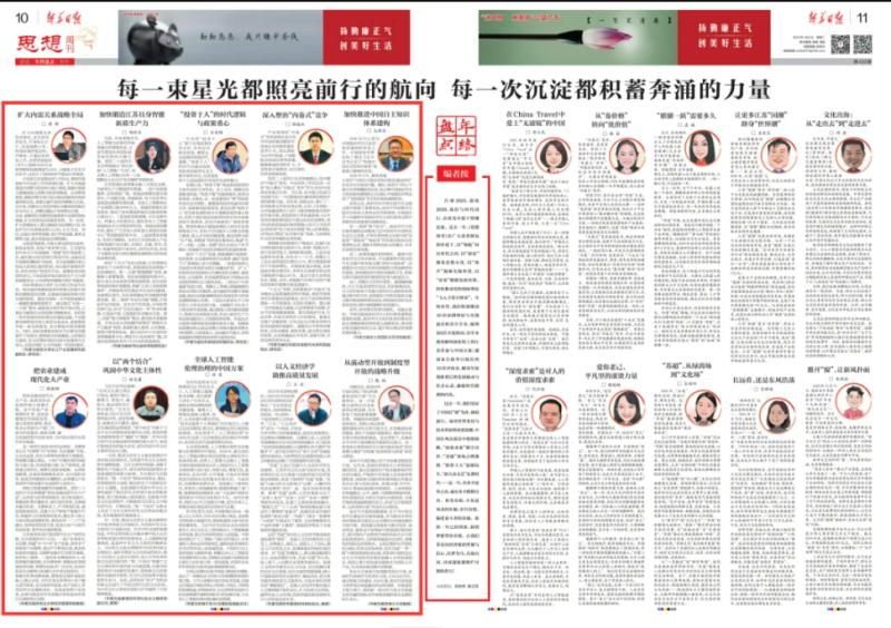 告别2025,迎接2026,我们与时代同行,在时光中留下铿锵足迹。过去一年,《思想周刊》在广大读者朋友的厚爱下,以“领航”回应时代之问,以“新论”激荡思想火花,以“政声”凝聚实践智慧,以“论见”赋能发展决策,持续推动党的创新理论“飞入寻常百姓家”。年终回望,我们特别邀请10位深耕理论与实践前沿的青年学者,梳理2025年度热词,以学术视角解码新征程上的江苏答卷与中国方案。