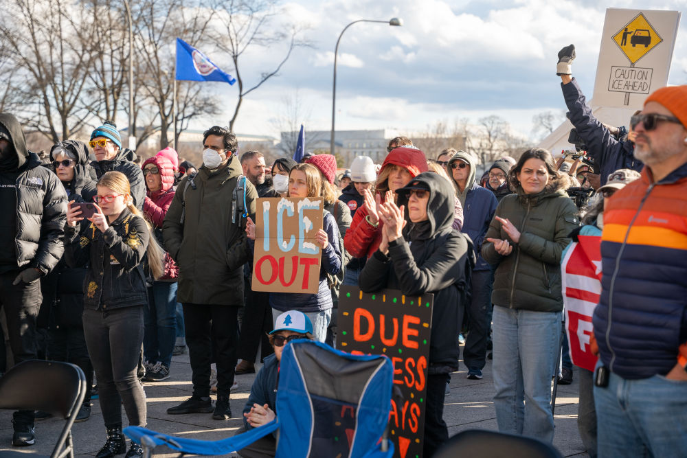 在白宫围栏外,示威者手举写有“为蕾恩·古德伸张正义”“唤醒美国”等标语横幅,要求追究ICE的责任。一名示威者对媒体说:“事情太过了!我们不能允许这样!明尼苏达州要求ICE离开,但ICE反而派遣了更多人员。”