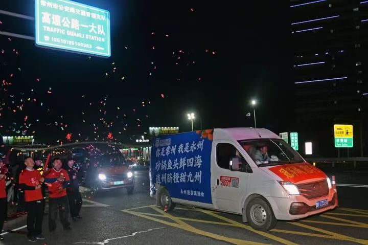 当载着橙香的货车抵达江苏,迎接它们的是各地球迷最高规格的礼遇。在连云港,球迷敲锣打鼓、挥舞旗帜,连景区“唐僧师徒”也前来助阵;在镇江,上百名球迷在广场上冒着寒风翘首以待;在苏州、南京等地,球迷们甚至在高速路口点燃烟花,一路引导车队。现场,“欢迎永州”“扬州永州一家亲”的呼喊声此起彼伏,两地球迷热情互动,甚至互学方言,场面热烈而感人。