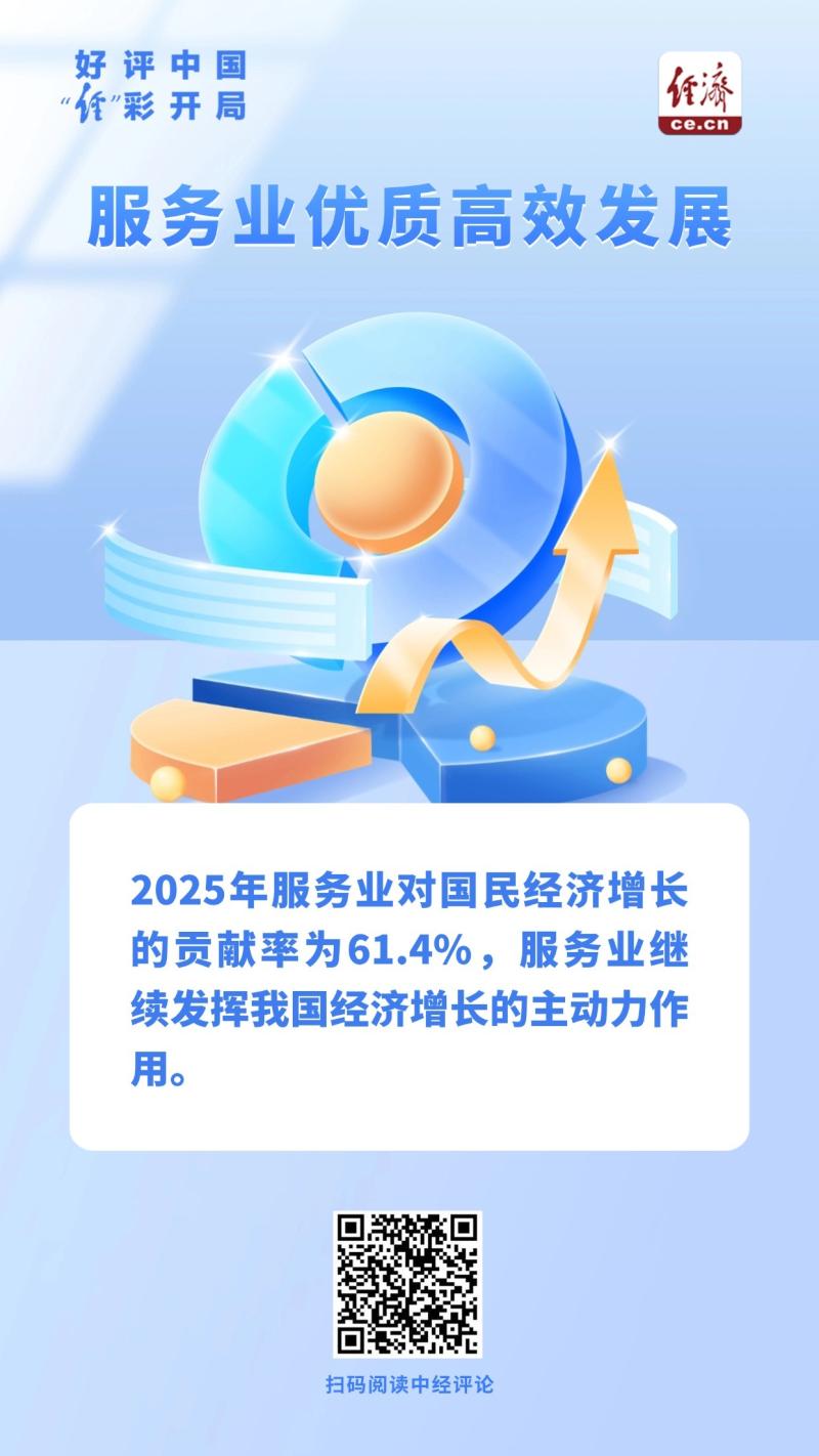“稳”的格局得到巩固、“进”的步伐更加有力、“新”的动能培育壮大、“韧”的特性愈发凸显……2025年,中国经济顶压前行。细看成绩单,服务业的综合表现格外抢眼。2025年服务业对国民经济增长的贡献率为61.4%,服务业增加值占国内生产总值比重为57.7%,比上年上升0.9个百分点,服务业继续发挥我国经济增长的主动力作用。