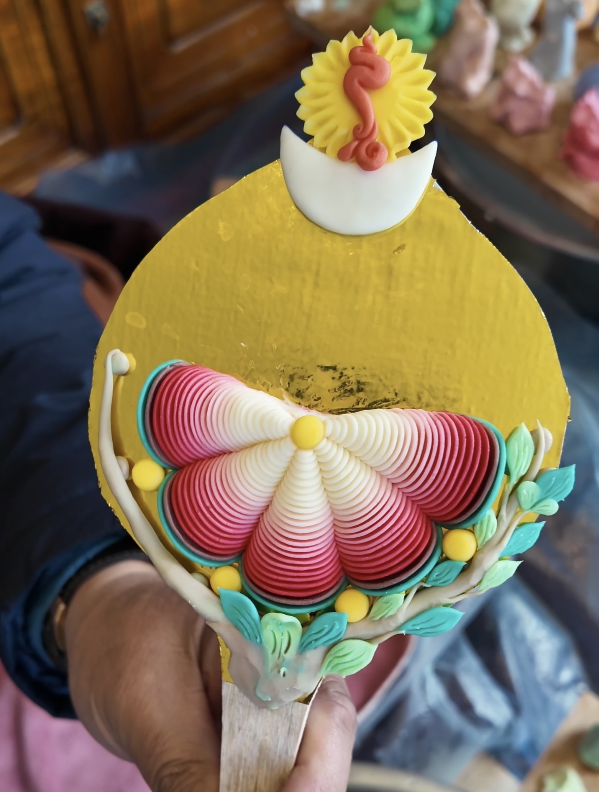 值得注意的是,酥油花所依附的木板,同样考验着这一生态实践的完整性。在传统中,它们被视作整体的一部分:或被细心清理、重复使用,延续其使命;或在特定仪式中恭敬地焚烧,使其与酥油一同化为青烟与灰烬,以一种洁净的方式完成物质形态的终极回归。这背后的古老法则始终如一:取自自然,归于自然。