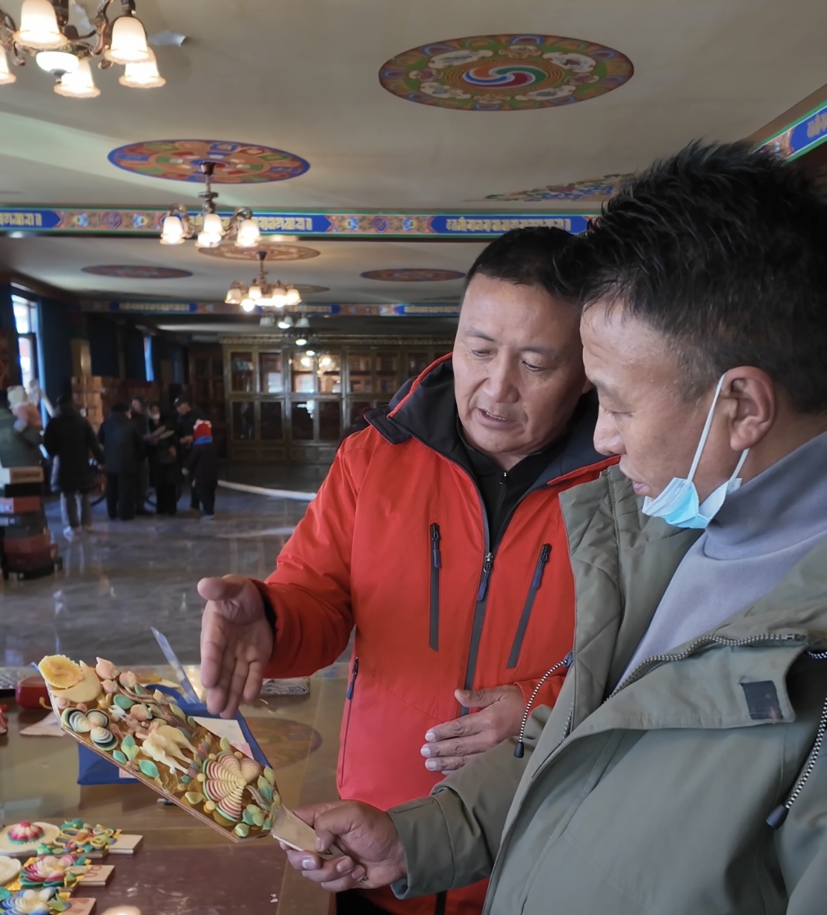 “哪种图案寓意更好?”“‘八吉祥徽’和‘和睦四瑞’能搭配吗?”问题接连不断,伦珠忙得几乎脚不沾地。他介绍,合作社于2025年11月成立,汇集了30多位手艺精湛的老师傅。为应对新年需求,大家提前一个月便开始制作,没想到开售仅3天,1500多对酥油花便已售出,备货几乎告罄。