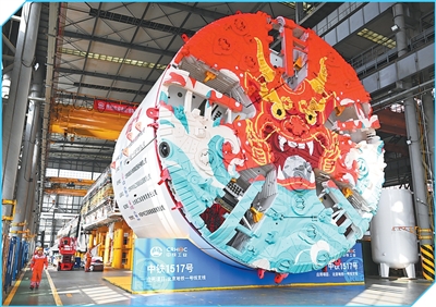 河南郑州,中铁装备集团车间,工人在进行盾构机下线验收工作。 新华社记者 李嘉南摄 |