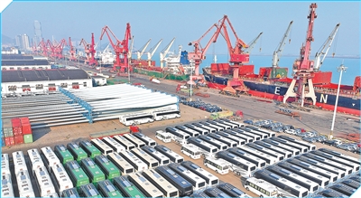 江苏连云港,连云港港东方港务分公司码头,大批车辆等待装船外运。 王 春摄(影像中国) |