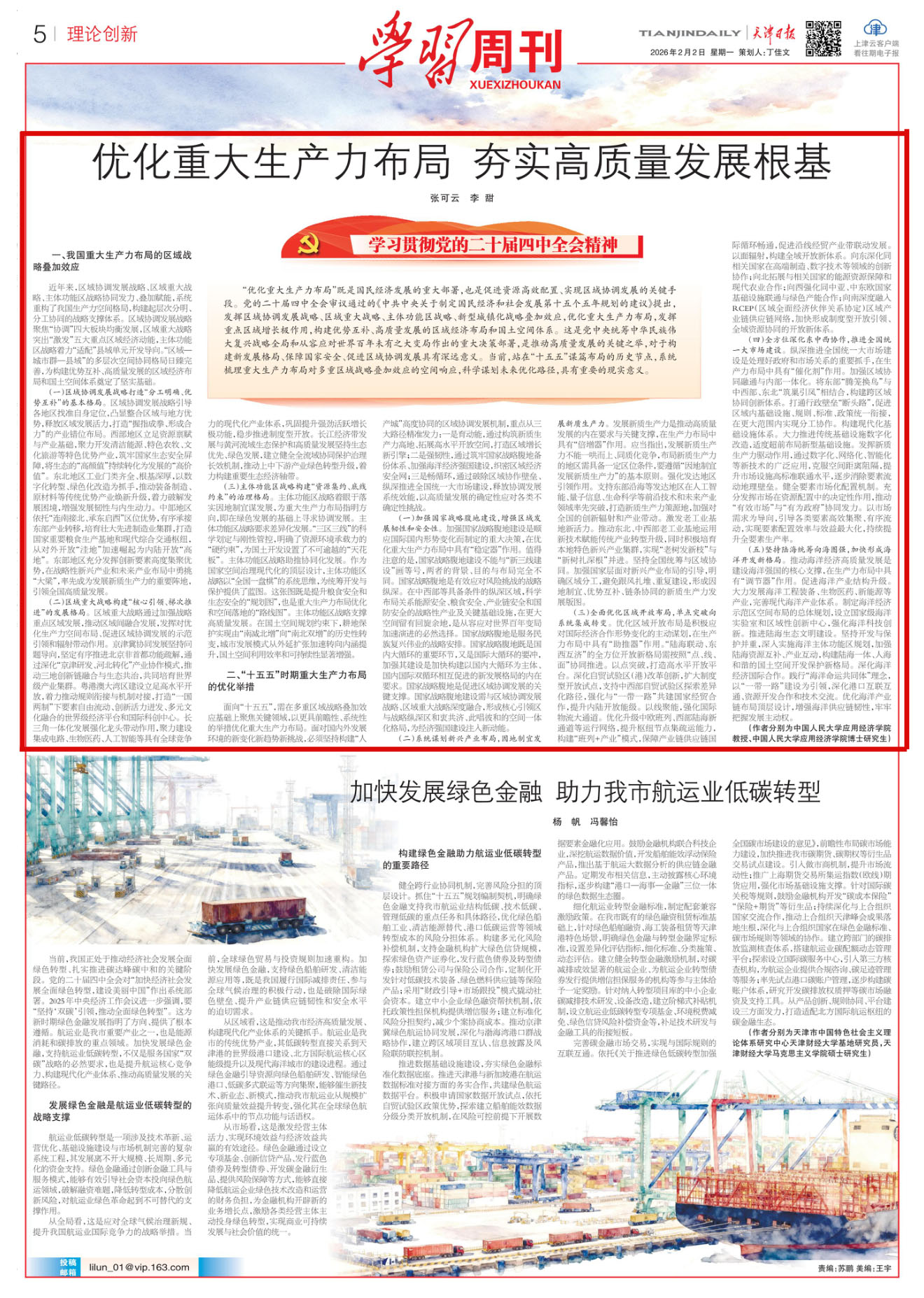 优化重大生产力布局 夯实高质量发展根基