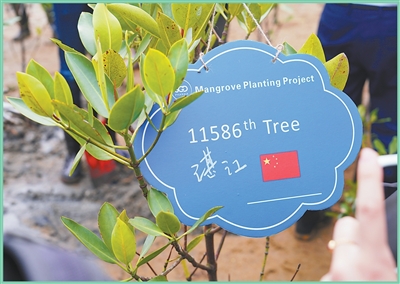 在广东湛江市金沙湾红树林科普基地开展的一场植树活动中,种下的第11586棵树挂上了“身份牌”。 法国SGD Pharma集团中国及亚太区总经理 法得利摄 【拍摄者说】 守护红树林,就是守护人类共同的未来。作为扎根广东湛江近30年的法资企业,我们很高兴能携手社会各界助力湛江打造“红树林之城”。自2022年发起“一起红树林”项目至今,我们已联合14家企业种下超1.2万株幼苗,正朝着2030年十万棵树苗的目标迈进。 |