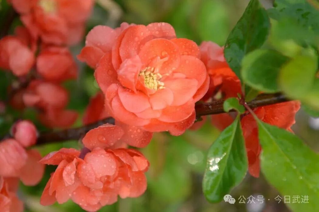 素有“花中贵妃”美誉的贴梗海棠,花梗极短、花朵紧贴枝干,鲜红的花苞寓意着富贵吉祥、坚忍奋进,恰逢年关摆放家中,既应景又添喜气,更是张奎方精心挑选的“感恩礼”。