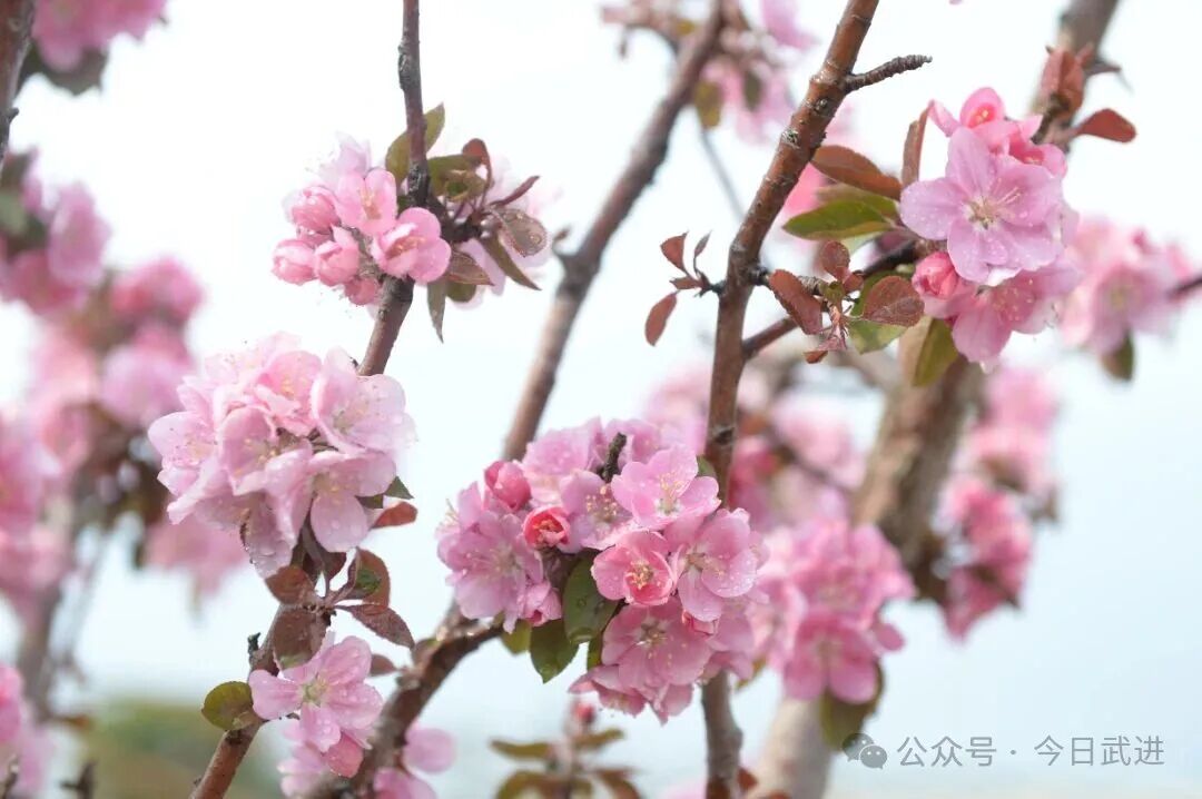 每到春日,海棠园内万株海棠竞相绽放,宛如一片姹紫嫣红的花海,成为漕溪最动人的风景线。它不仅成了远近闻名的观赏基地,更成为漕溪村打造特色品牌的“起点”。时至今日,在张奎方这样的种植大户的带动下,漕溪村内海棠种植氛围愈发浓厚,全村海棠种植面积已有上百亩,各色海棠品种在整个春季的不同时节渐次开放,花期最长可持续两个月。