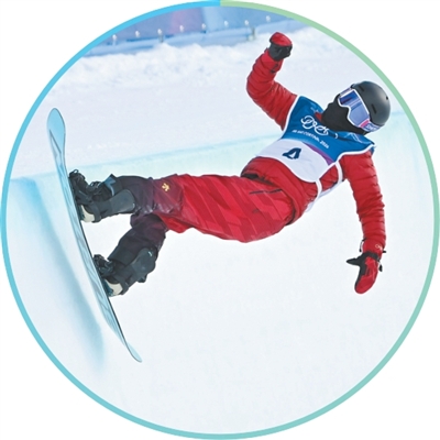 中国队运动员蔡雪桐在单板滑雪女子U型场地技巧资格赛中。 本报记者 王 亮摄 |