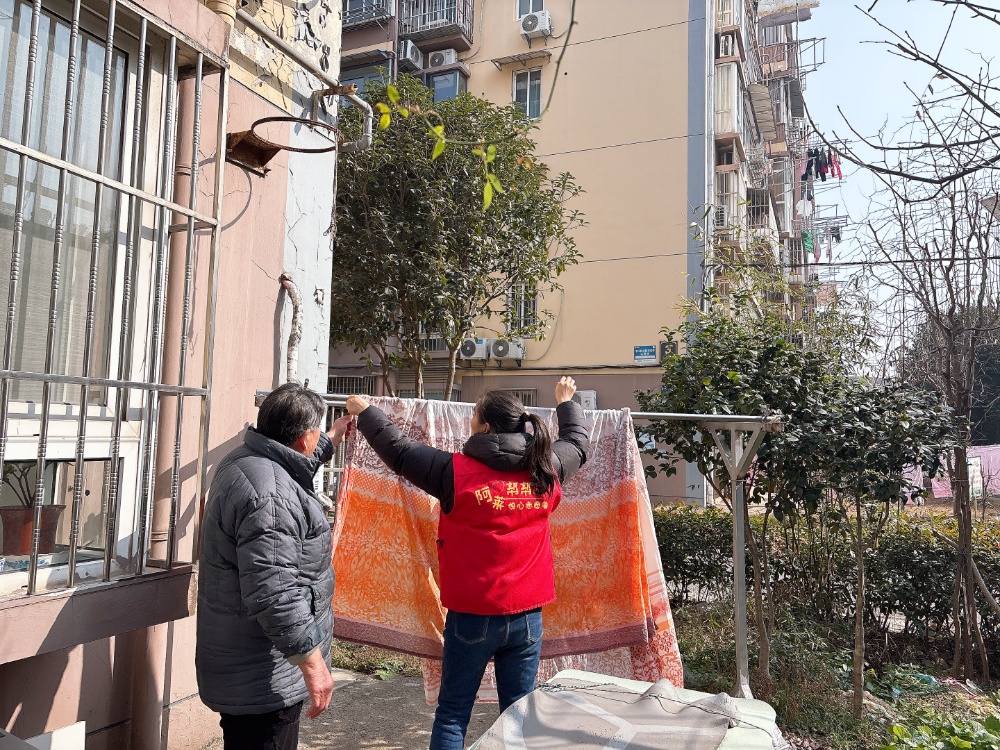 新春将至,探访小队提着热乎的年夜饭、捧着红“福”字,叩开独居空巢老人的家门,“阿姨,我们来陪您吃团圆饭啦!”志愿者分工有序:贴春联、粘福字,让年味铺满小屋;细心打扫整理,让居所焕然一新;给老人晾晒被褥,把阳光的暖意,送进老人心底。志愿小队穿梭在楼栋间,用点滴细节,让“一米阳光”真正穿透门扉、浸润心房。