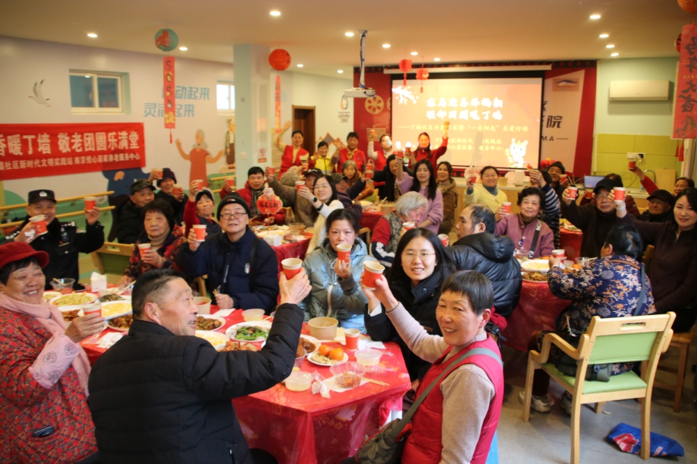 此次家宴由丁墙社区联合南京悦心居家养老服务中心,依托社区民生服务品牌——强“墙”友邻·益企同行,创新采用主分会场联动模式,为到场老人搭建相聚平台,也为不便出门的老人上门送暖,让这个春节既有烟火暖意,更有幸福质感。