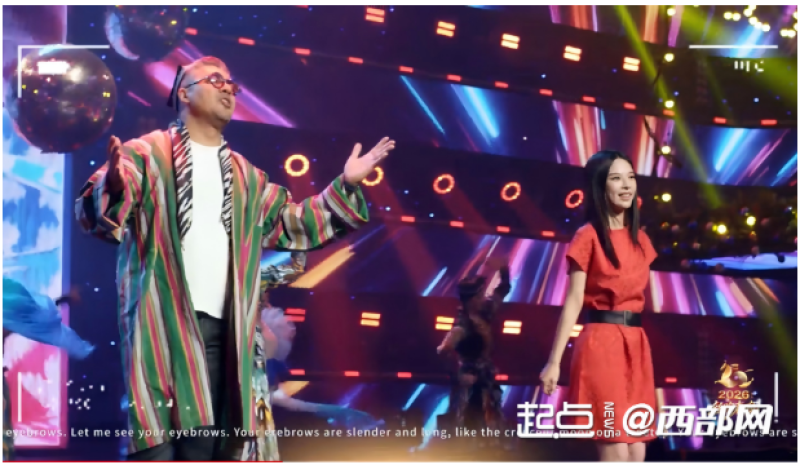 中亚多国艺术家的深度参与,更让这场晚会成为民心相通的桥梁。《中国好声音》亚军蔡子伊与乌兹别克斯坦“糖”乐队主唱安瓦尔·朱拉耶夫跨界联唱《黑眉毛姑娘》《小雨》,让华语歌声与中亚旋律交织共鸣;中亚五国留学生在《典籍里的丝路》中以青春姿态传递丝路精神。