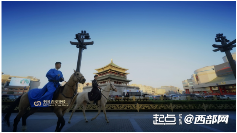 节目形式的创新同样令人耳目一新。人文微电影《丝路双弦》以“器”会友,讲述陕西秦腔板胡制作师与哈萨克库布孜工匠跨越千里的文化默契;《你可以慢点走》以穿越机视角带来大开大合的西安中轴线纵览,让电视塔的锋芒与钟楼的历史厚重感相互呼应;《鲜衣怒马向长安》中,两匹汗血宝马从钟楼走到大雁塔,从西安奥体中心走进城市楼宇,诠释“一马当先,马到成功”的主题。