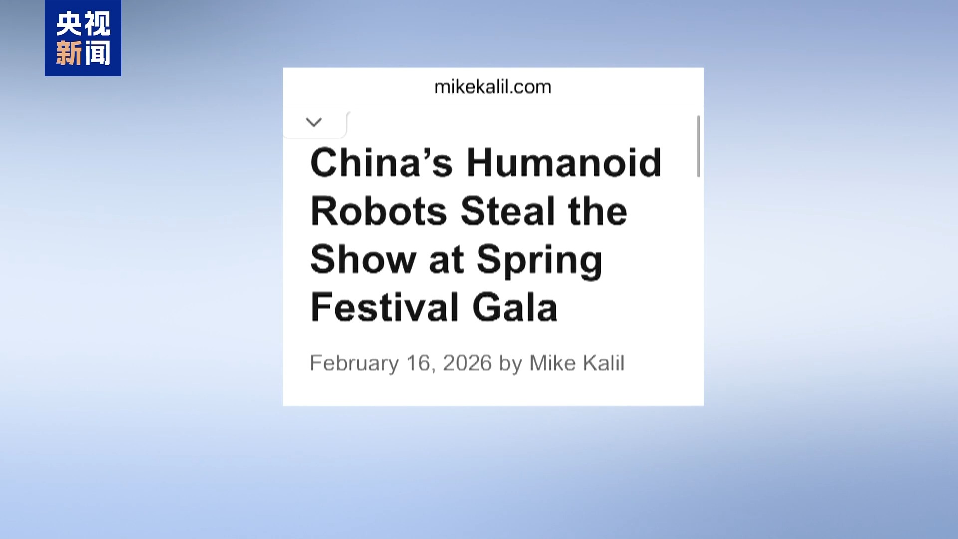 有美国科技媒体(mikekalil)发表题为《中国仿人型机器人在春节联欢晚会上大放异彩》的文章,文中称“机器人的动作比去年的机器人表演更加杂技化和更具流畅性。它们表演了空中技巧、跑酷,以及标志性的武术招数,展示了全身协调和精确的时间控制。”