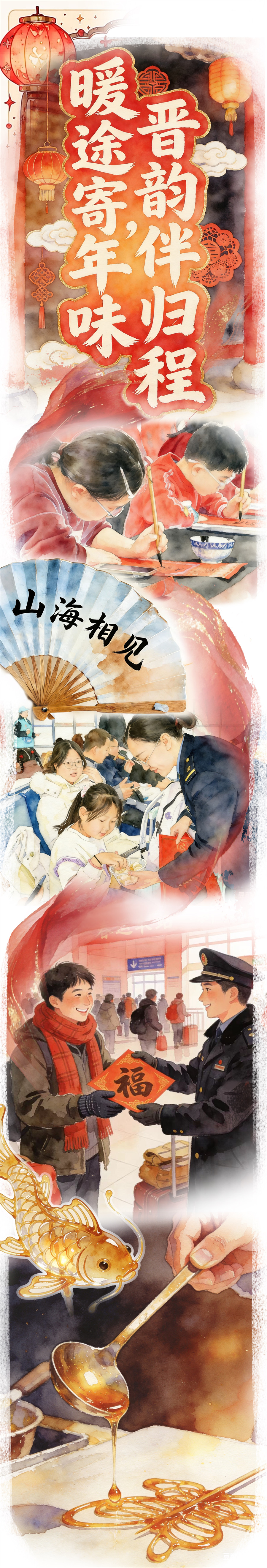 暖途终有尽,晋韵永相传。这一系列文化活动,从来不是简单的形式。春运,远不止一场匆匆的赶路,更是一场温暖的奔赴;中华优秀传统文化,从来不只是博物馆里的陈列,更是融入烟火人间、温暖你我心底的力量。愿这份藏在旅途里的温情与善意,温暖整个寒冬,也让中华文脉在归乡的旅途中,生生不息、薪火相传。(作者/泰轩萍 编辑/张哲宁)