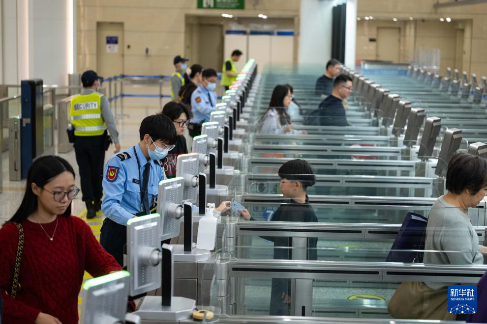 2月18日,旅客有序通过横琴口岸澳门口岸区离境通道。 新华社发(张金加摄)