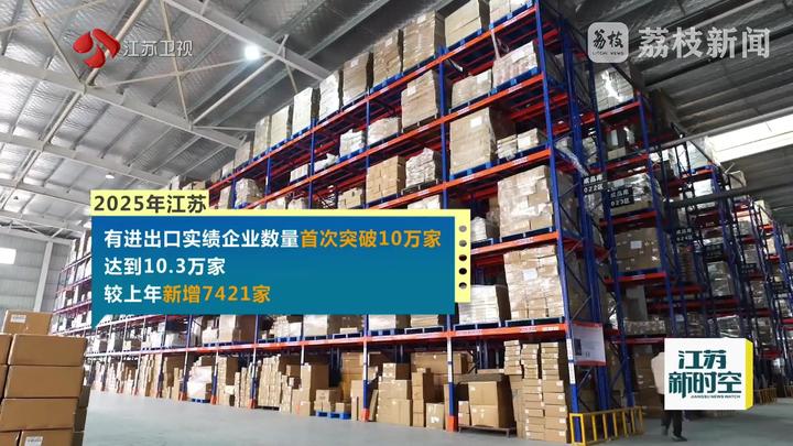 亮眼的外贸成绩单背后,是江苏外贸经营主体的持续壮大和发展活力的不断释放。数据显示,2025年江苏省有进出口实绩企业数量首次突破10万家,达到10.3万家,较上年新增7421家;全省进出口总额达5.95万亿元,同比增长6%。