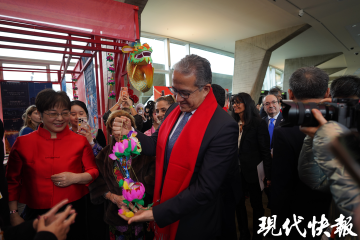 当地时间2月10日,恰逢中国农历小年,在巴黎联合国教科文组织总部大楼的“南京符号文化展”上,秦淮灯彩成为焦点。鱼龙灯、荷花灯旁围拢着众多嘉宾,他们俯身细察竹篾骨架的精妙结构,又仰头观看匠人纪录片。“我被这种手工制作的灯笼所吸引,很钦佩这样的工艺、色彩,更对它们所代表的传统和文化深深着迷。”一位联合国教科文组织官员感慨道。
