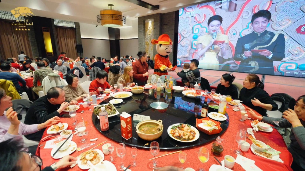 南园宾馆坐落于苏州十全街,除夕当天接待年夜饭78桌,食客700余人,既有住店客人,也有苏州本地居民,总数创历史新高。菜品主打苏式三件子、碧绿冰糖汁圆蹄等苏州特色本帮菜,让食客都能在阖家团圆之际尝到苏式传统美食。南园宾馆副总经理刘艳告诉记者,由于苏州是知名旅游目的地,来到苏州过年的外地游客不在少数,因此他们着重做强“文旅+餐饮”服务。除夕当天,预订年夜饭的客人都可以跟随本地手艺人体验手塑面人、糖画、剪纸,感受非遗魅力。在就餐体验上,餐厅也进一步“场景化”。客人可在餐厅体验砸金蛋、抽奖等互动,老人和小孩还会收到“财神”派发的红包。“大家对年夜饭的互动反馈非常好,正月初一当天我们就接到许多预订2027年年夜饭的电话。”刘艳说。