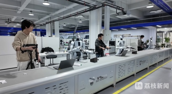 这台机器人并非天生就会卖货。它的“上岗培训”,在距离景区几十公里外的江苏省具身智能机器人工业数据采集与实训中心完成。那里,有一群“00后”正在手把手教机器人认识这个世界。