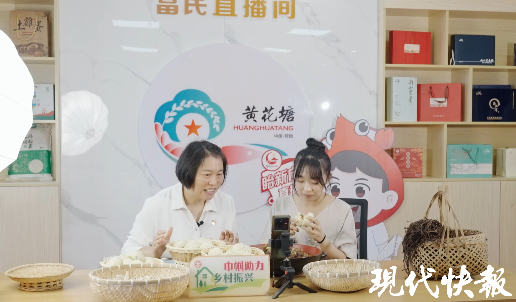徐玲在富民直播间给当地的包子直播带货