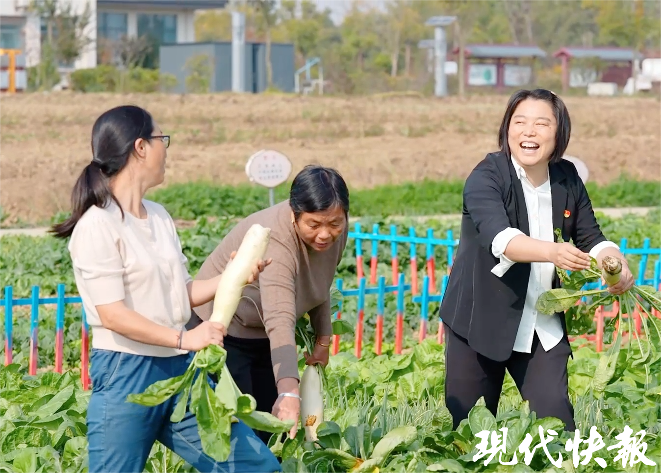 徐玲和村民一起采摘蔬菜