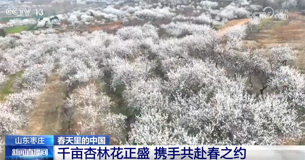 山东枣庄:千亩杏林花正盛 携手共赴春之约