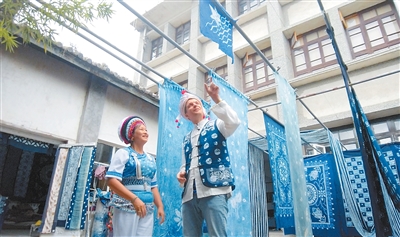 英国籍视频博主斯图尔特·维金在云南大理体验白族扎染技艺。 吴 桐摄 |