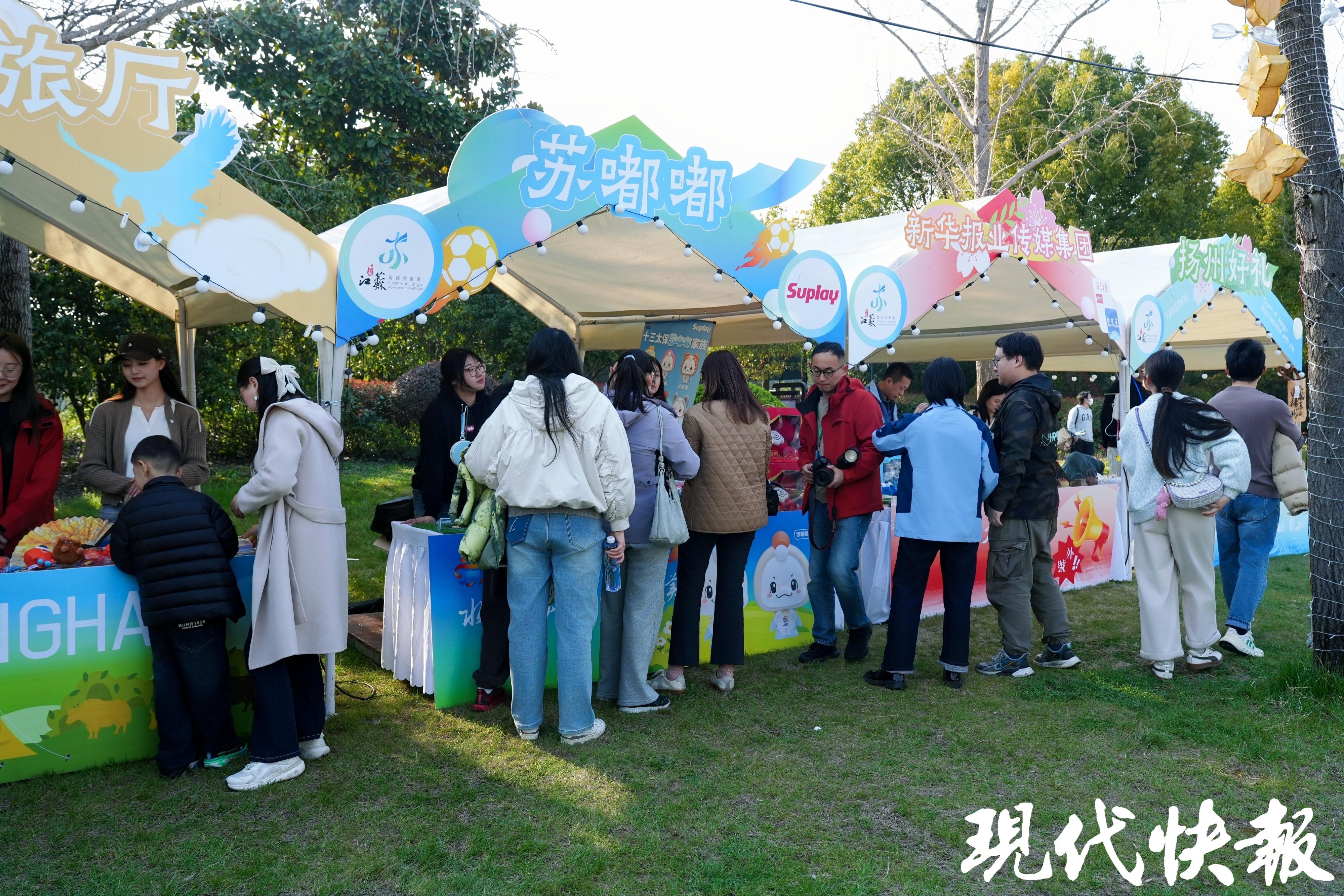 推广季期间,诚意满满的江苏春季文旅惠民“大礼包”正式发布,全省将开展7大类“1+29+N”项文旅促消费系列活动,推出超4000项主题活动、超1500项惠民措施。活动现场,还举办了文旅消费特色市集与直播活动,非遗文创、研学产品、春季线路等“文旅+”融合产品琳琅满目。刚刚发布的“苏超”吉祥物“苏嘟嘟”、扬州太保鹅嘟嘟也来到现场,与水韵江苏吉祥物“苏苏”,携手献上热力表演,萌动全场。