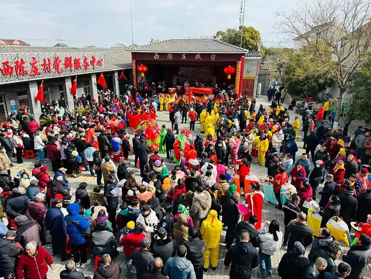 3月20日,“二月二,龙抬头。”溱潼镇冯庄村、西陈庄村一南一北同擂锣鼓,水乡春天盛大开场。西陈庄村人贴人,脚跟脚,走两步就得侧身。舞龙、舞狮、高跷、唱凤凰轮番登场,孩童骑在父亲肩头够龙珠,姑娘手机自拍与舞龙同框。村民们表示,在庙会上挤一挤,一年的日子才带劲儿。逛集管“吃”:刚出锅的麻糕、炸小鱼、糖葫芦,最地道的是左手一串鱿鱼,右手一块炸糕,再拎一袋刚炸的爆米花。还有剪纸绣娘、面塑名匠、糖画大师,免费看一场非遗秀。