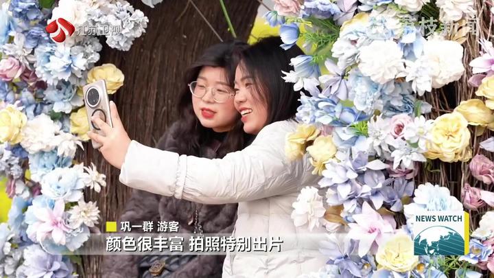 游客巩一群说:“这边的七彩油菜花特别漂亮,颜色很丰富,拍照特别出片。我和朋友一起来踏青游玩、融入自然,感觉春天的氛围感特别足。”