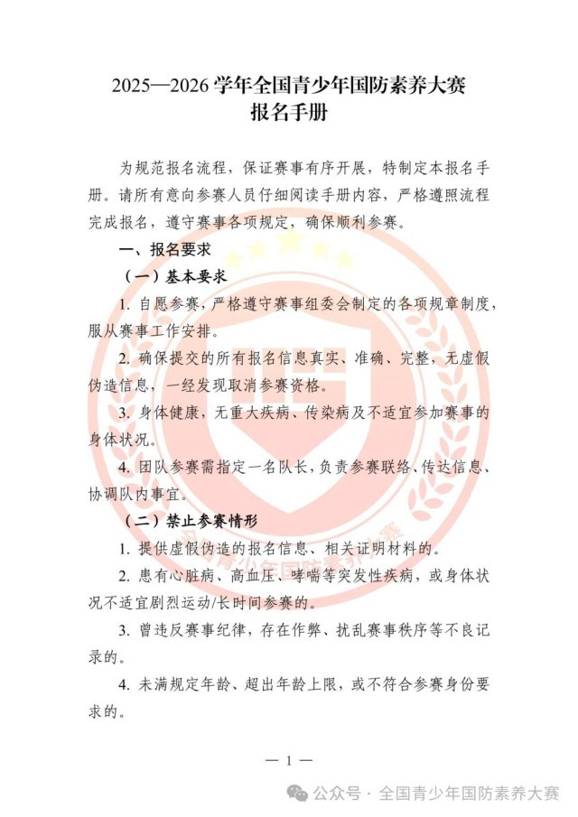 2025—2026学年全国青少年国防素养大赛开始报名啦