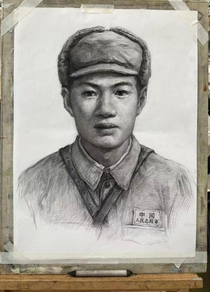 师生们心里清楚,他们要画的不仅仅是一张面孔,更是一个军人穿越战火的坚毅与精气神。学生们描摹英雄画像的过程,每一笔都是在触摸那段历史。战士在枪林弹雨中的热血担当,透过眉眼、透过神态,一笔一笔地呈现出来。