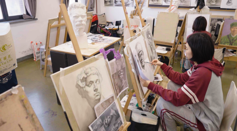 在李晨老师的指点下,高二八班学生赵芯熠面前的画纸上,一张英俊刚毅的脸庞渐渐清晰……