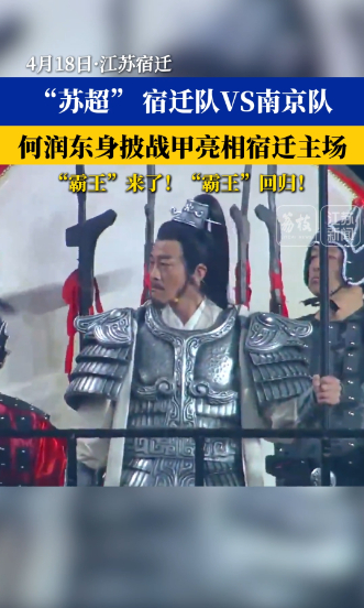 在徐州队主场对阵泰州队的赛前暖场环节,“刘邦”率甲士登场,一声号令,全场万人齐唱《大风歌》,两千年前的帝王之气与赛场上的热血喧嚣碰撞。大约同一时间,宿迁队主场对阵南京队的赛场上,演员何润东再披银甲、手持天龙破城戟化身项羽,绕场巡游,以“我宿迁男儿最不缺的就是决心和勇气”,威武助阵,助力宿迁队以2:0战胜南京队,取得赛季开门红。