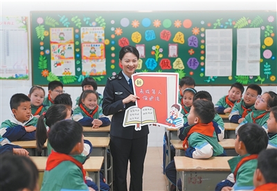 浙江金华市婺城区人民检察院检察官在辖区小学开展法治宣传教育。